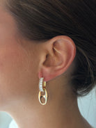Gold finish pave huggie hoops (12mm) with removable pop-tab charm