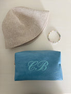 Pack includes one Embroidered Pouch with your initials, one Bankston Beach Anklet, and one plain Sun Hat